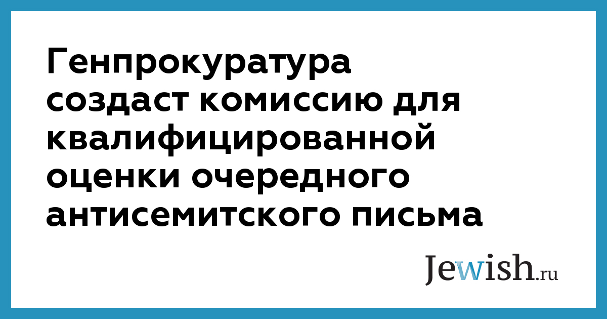 Генпрокуратура создаст комиссию для квалифицированной оценки очередного антисемитского письма