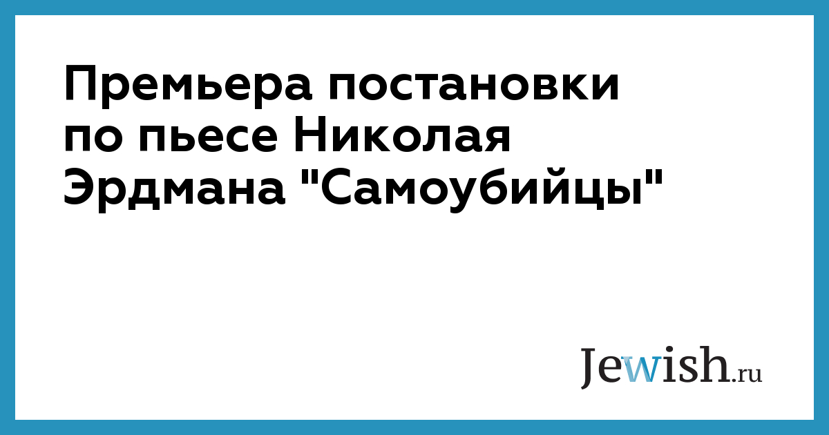 Премьера постановки по пьесе Николая Эрдмана "Самоубийцы"