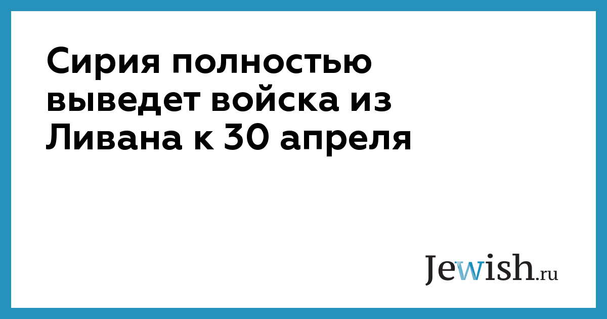 Полный вывод всех сирийских военных и сотрудников спецслужб с ливанской территории состоится до 30 апреля 2005 года", — сказал Ред-Ларсен.