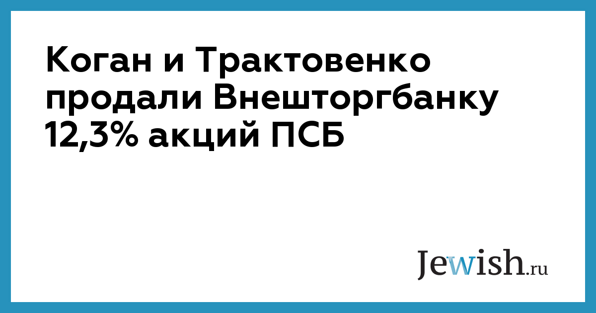 Коган и Трактовенко продали Внешторгбанку 12,3% акций ПСБ