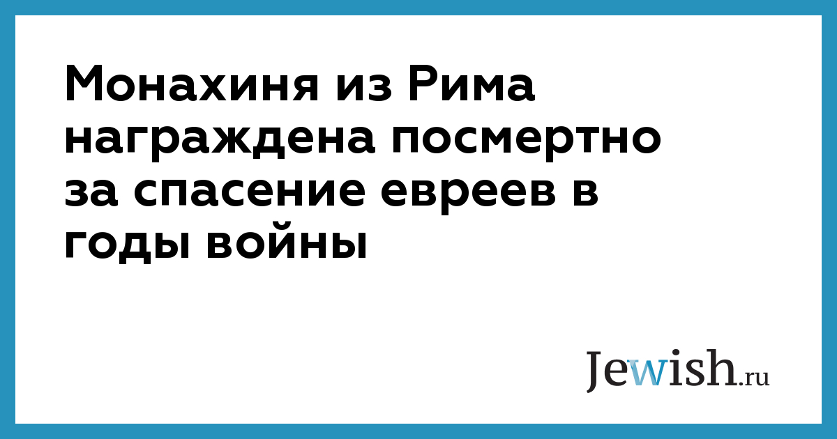 Монахиня из Рима награждена посмертно за спасение евреев в годы войны