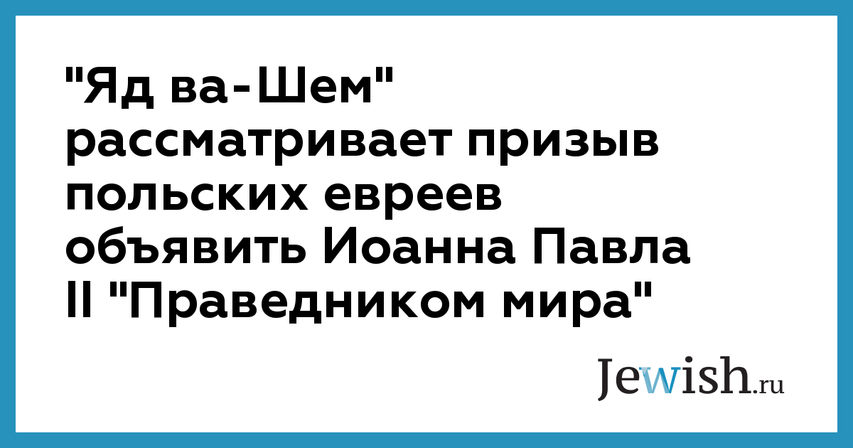 Так или иначе, по сообщению представителя "Яд ва-Шем", вопрос о присуждении Иоанну Павлу II титула праведника поступил сейчас на
