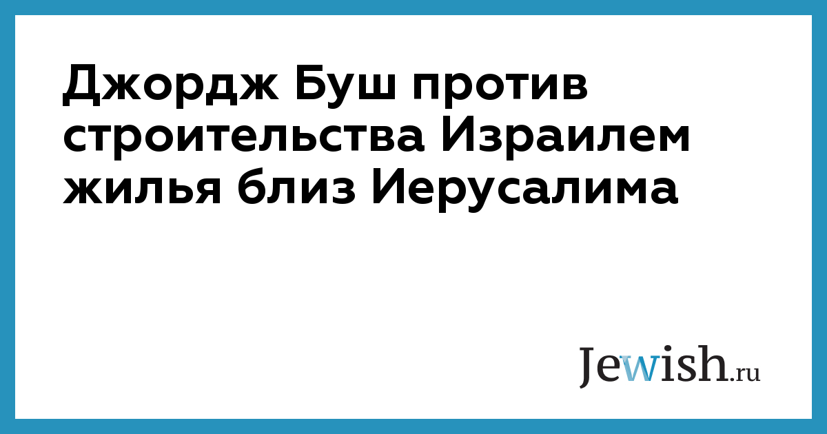 Джордж Буш против строительства Израилем жилья близ Иерусалима