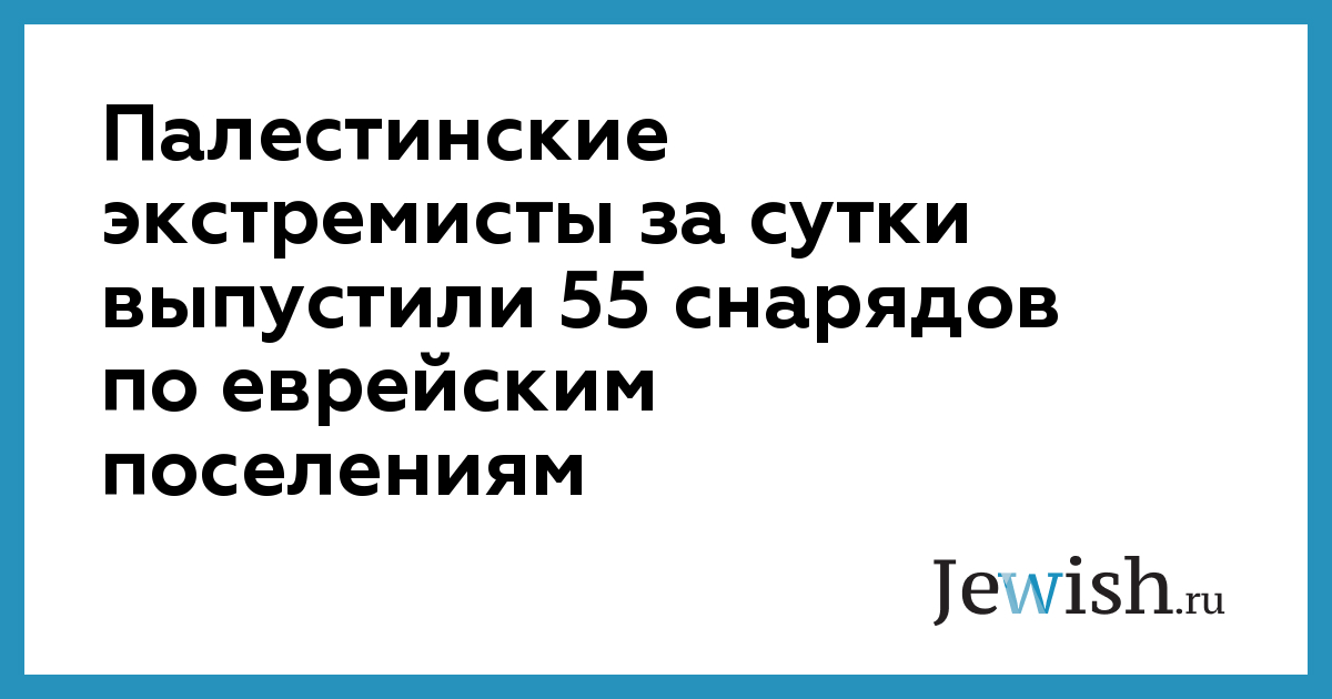 Палестинские экстремисты за сутки выпустили 55 снарядов по еврейским поселениям