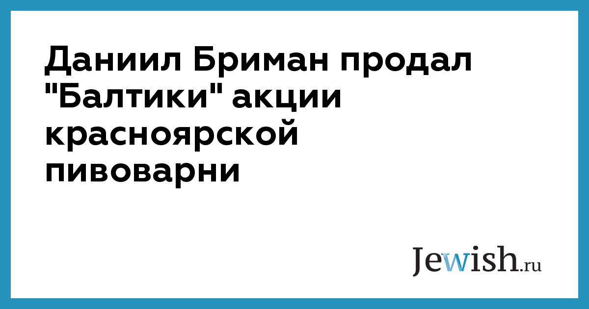 Даниил Бриман продал "Балтики" акции красноярской пивоварни