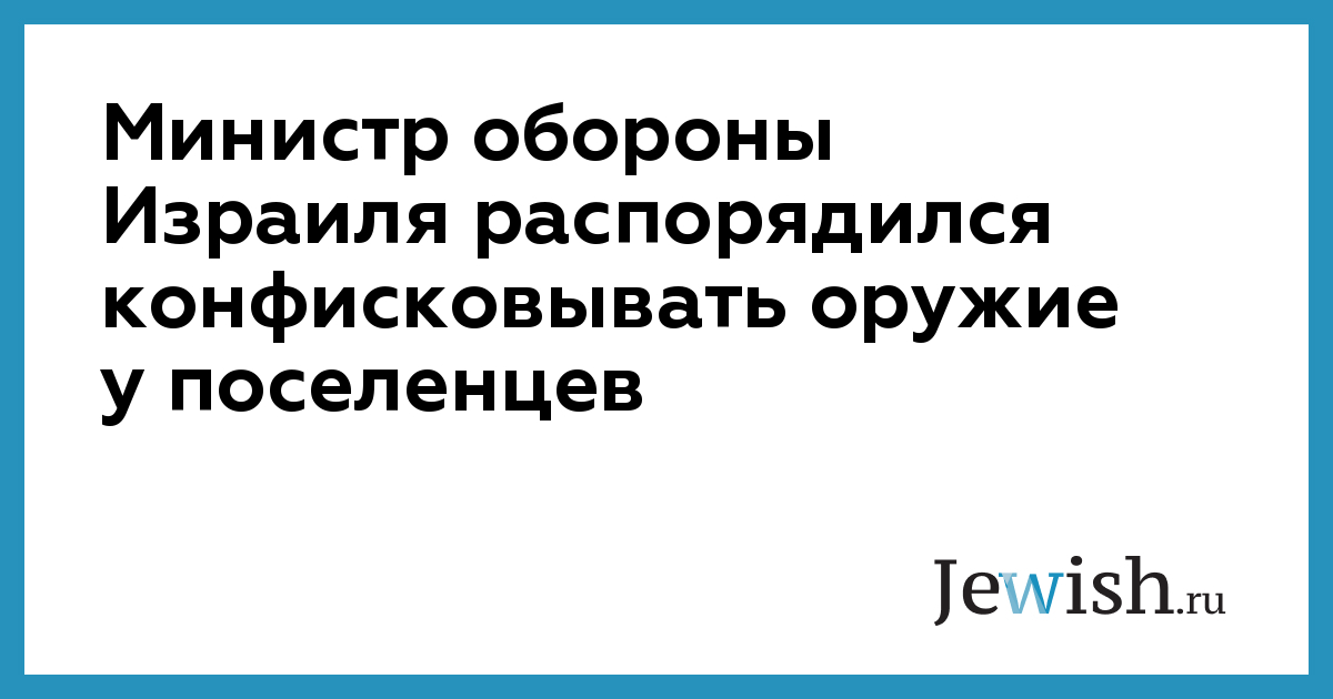Министр обороны Израиля распорядился конфисковывать оружие у поселенцев