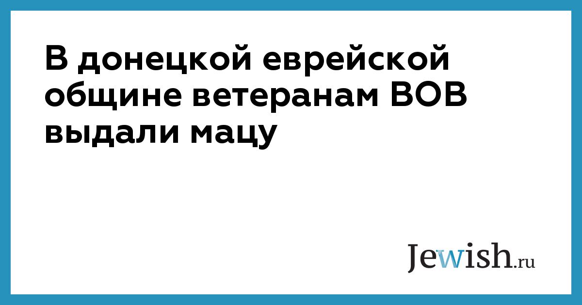 В донецкой еврейской общине ветеранам ВОВ выдали мацу
