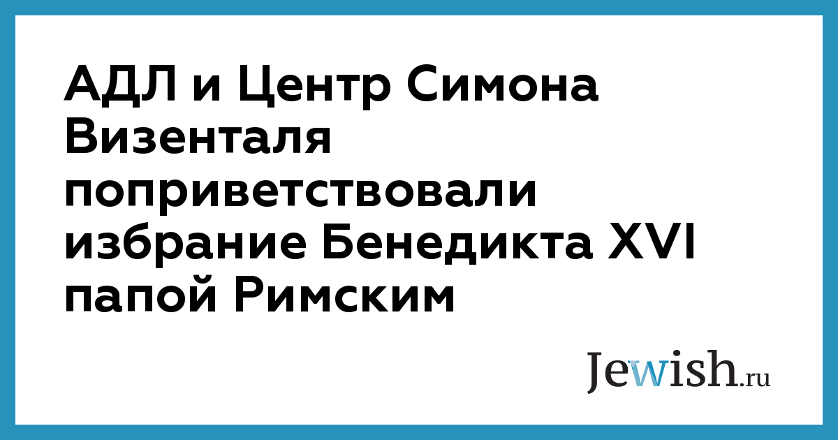 АДЛ и Центр Симона Визенталя поприветствовали избрание Бенедикта XVI папой Римским
