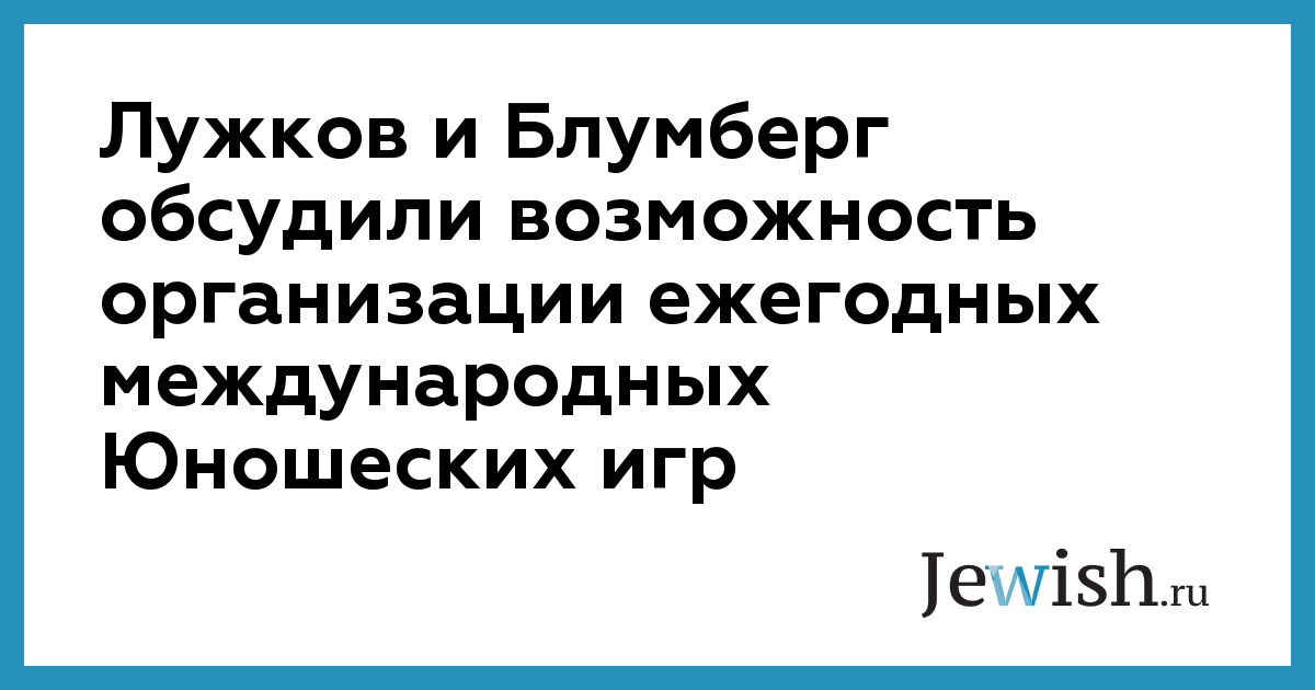 Лужков и Блумберг приняли идею Фонда "Мировой спорт против терроризма" раз в два года организовывать Международные юношеские Игры. Первые такие соревнования должны будут пройти в 2006 году в Москве, а через два года — в Нью-Йорке. Полную поддержку этой инициативы выразил президент МОК Жак Рогге, с которым Лужков обсудил перспективы проведения Игр.