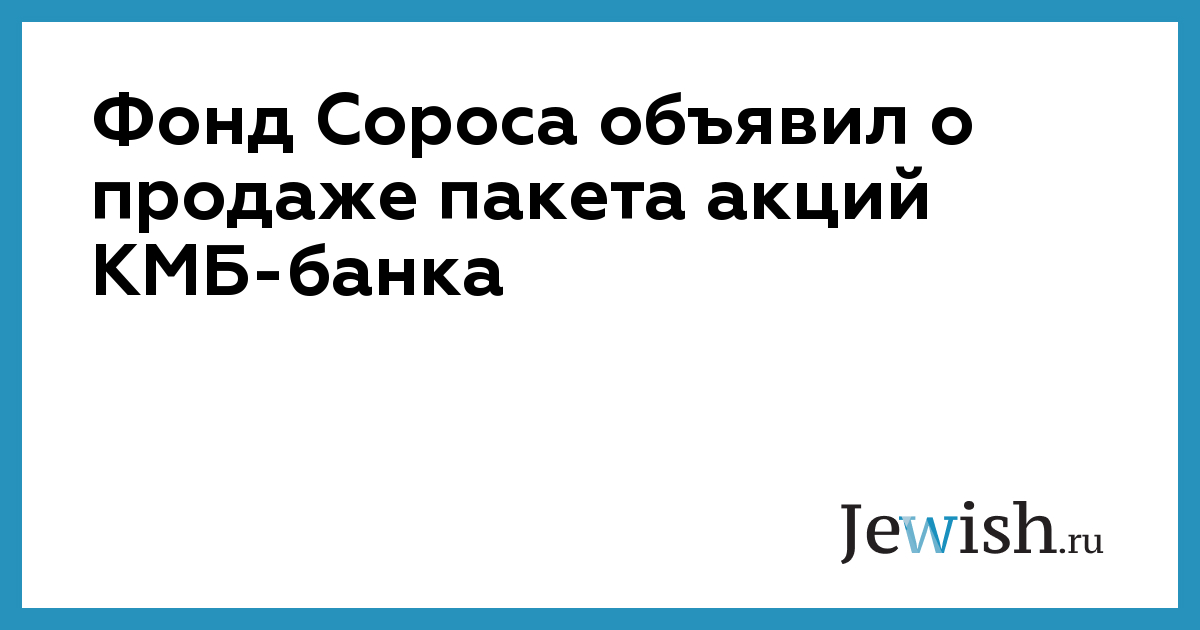 Фонд Сороса объявил о продаже пакета акций КМБ-банка