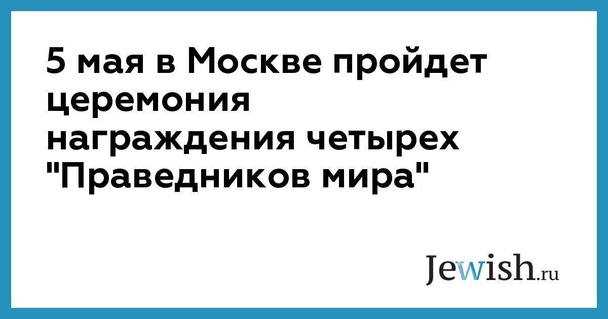 5 мая в Москве пройдет церемония награждения четырех "Праведников мира"