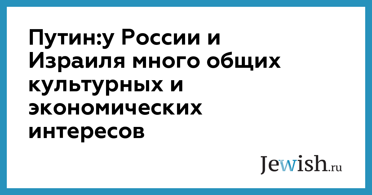 Путин:у России и Израиля много общих культурных и экономических интересов