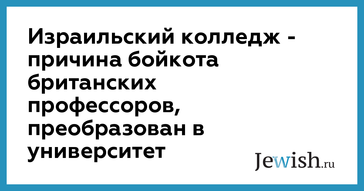 Израильский колледж — причина бойкота британских профессоров, преобразован в университет