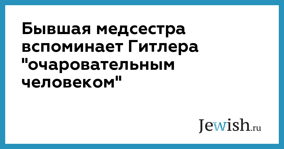 Бывшая медсестра вспоминает Гитлера "очаровательным человеком"