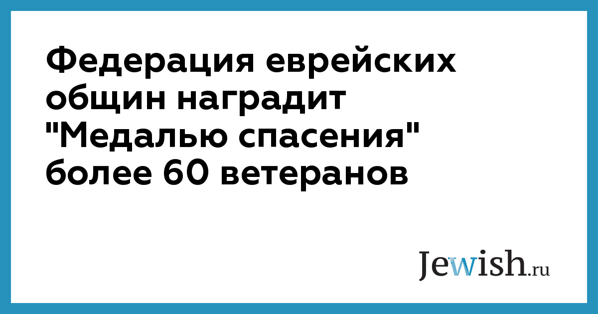 Федерация еврейских общин наградит "Медалью спасения" более 60 ветеранов