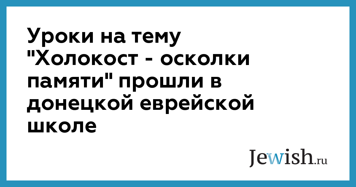 Уроки на тему "Холокост — осколки памяти" прошли в донецкой еврейской школе