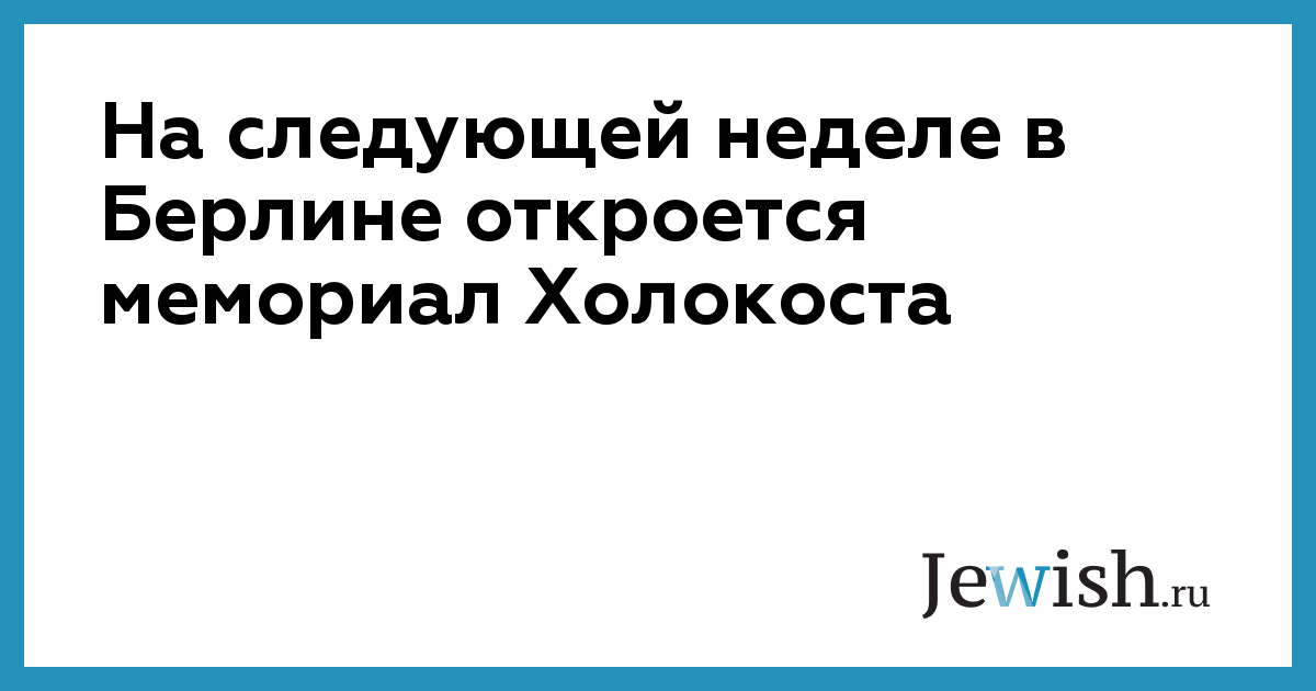 На следующей неделе в Берлине откроется мемориал Холокоста