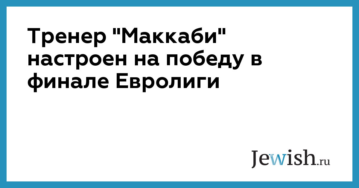 Тренер "Маккаби" настроен на победу в финале Евролиги