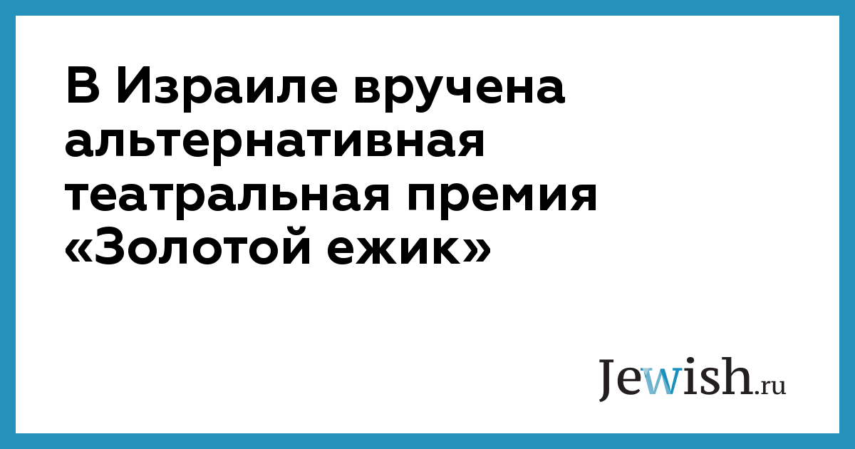 В Израиле вручена альтернативная театральная премия «Золотой ежик»