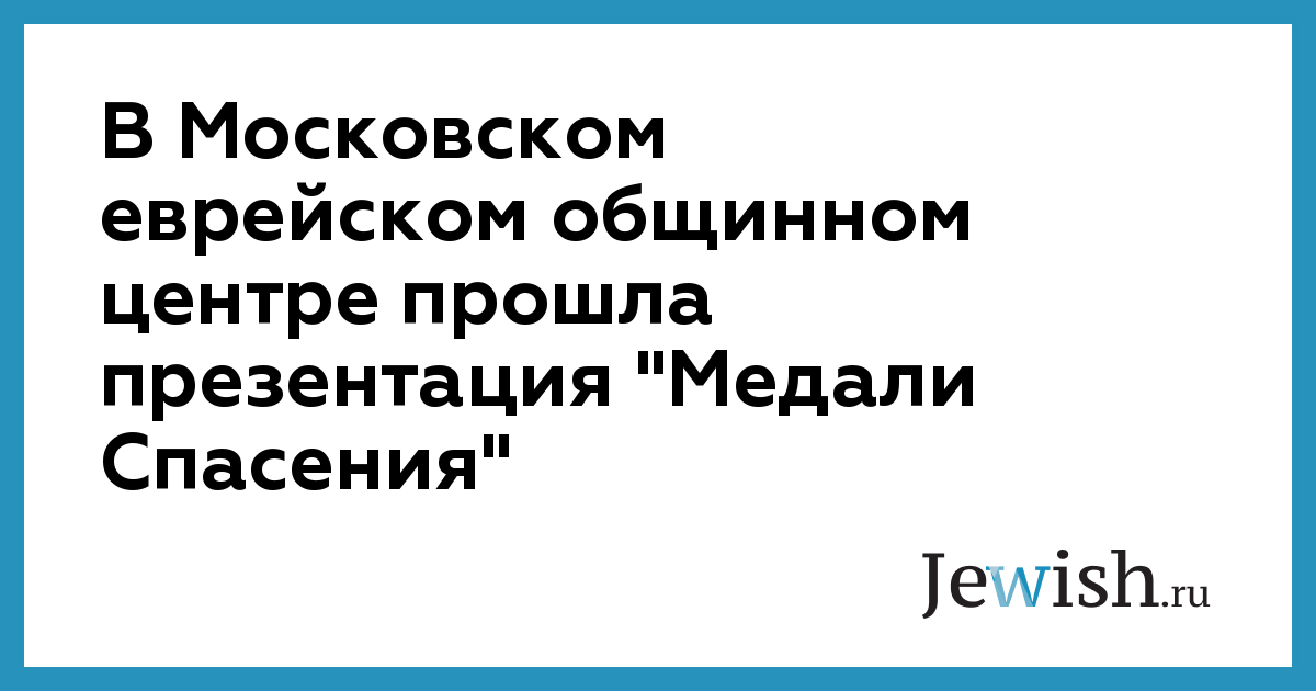 В Московском еврейском общинном центре прошла презентация "Медали Спасения"