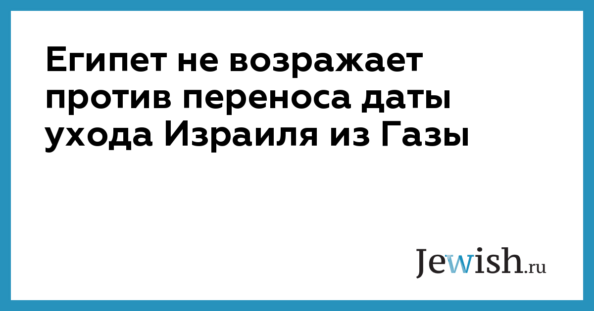 Египет не возражает против переноса даты ухода Израиля из Газы