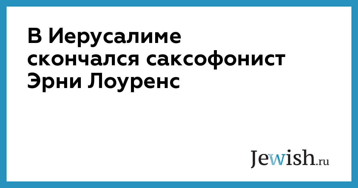 В Иерусалиме скончался саксофонист Эрни Лоуренс