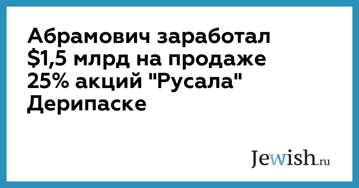 Абрамович заработал $1,5 млрд на продаже 25% акций "Русала" Дерипаске