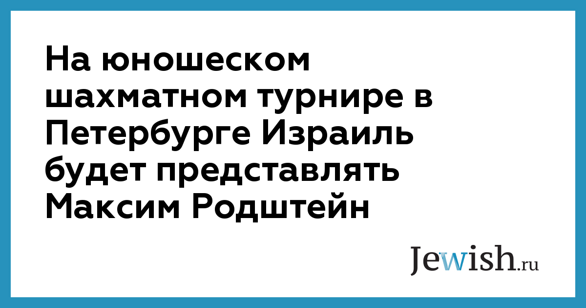 На юношеском шахматном турнире в Петербурге Израиль будет представлять Максим Родштейн