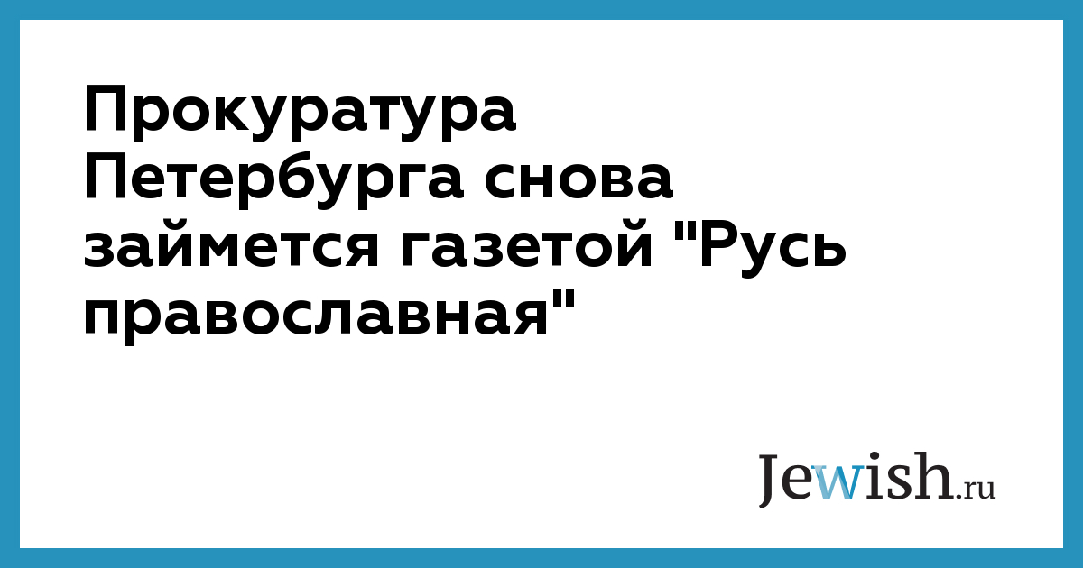 Прокуратура Петербурга снова займется газетой "Русь православная"