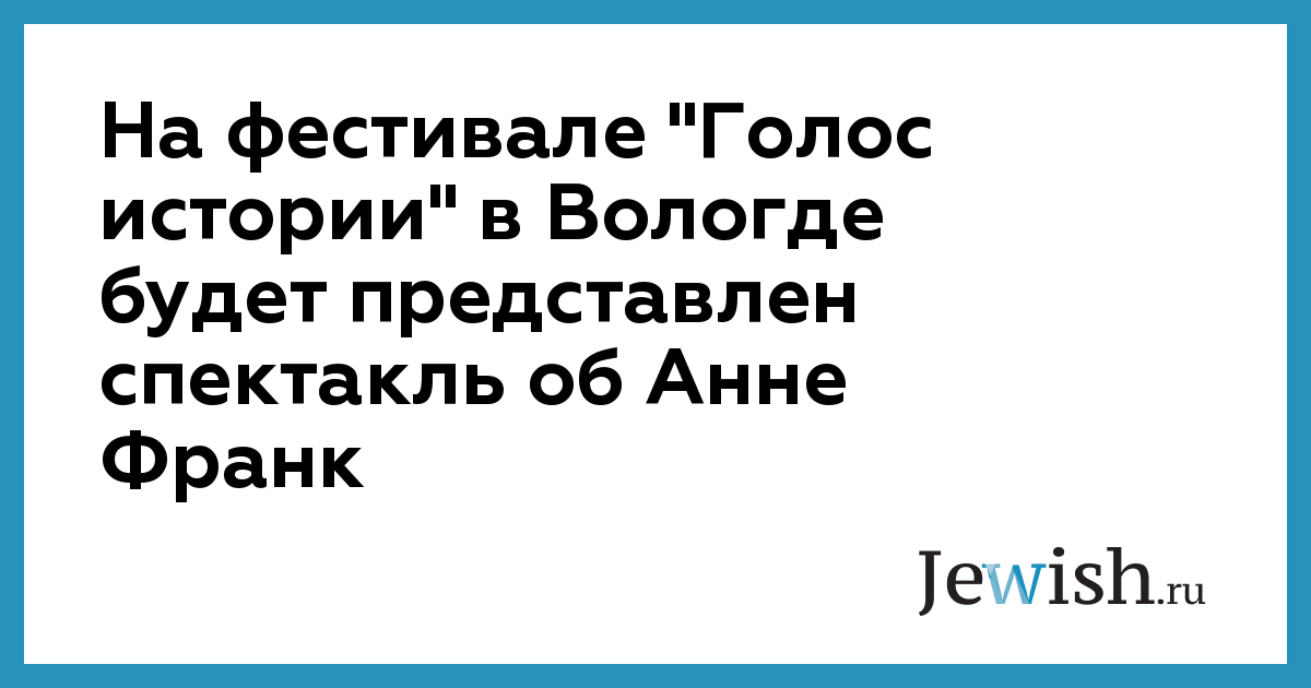 На фестивале "Голос истории" в Вологде будет представлен спектакль об Анне Франк