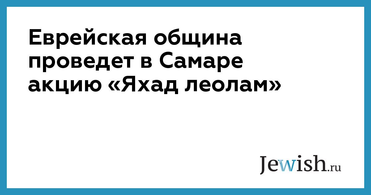 Еврейская община проведет в Самаре акцию «Яхад леолам»