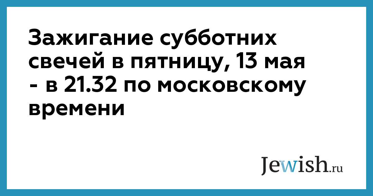 Зажигание субботних свечей в пятницу, 13 мая — в 21.32 по московскому времени