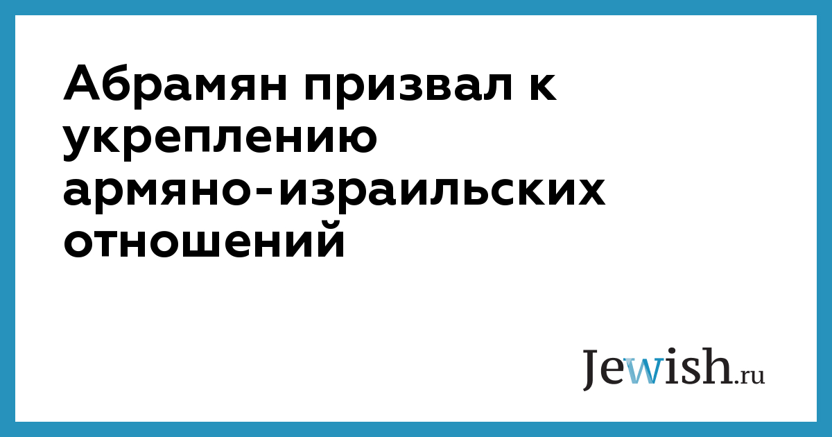 Председатель Всемирного конгресса армян, глава Союза армян России Ара Абрамян призвал развивать армяно-израильские отношения, сообщает Итар-Тасс. “Наши страны связывает история тысячелетий, однако на сегодняшний день двусторонние отношения находятся на явно неудовлетворительном уровне, и есть необходимость развивать двусторонние отношения ”, — заявил Ара Абрамян. Он также отметил, что в Израиле нет армянского посольства, и необходимо работать в этом направлении, сообщает panarmenian.neт.
