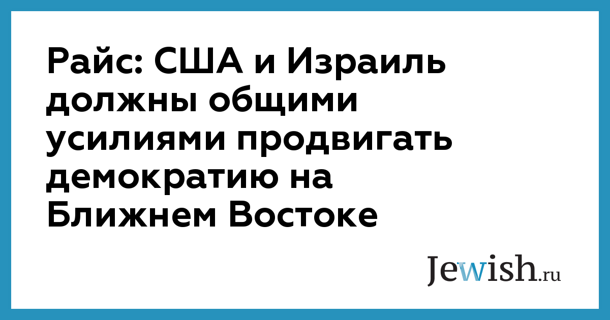 Райс: США и Израиль должны общими усилиями продвигать демократию на Ближнем Востоке