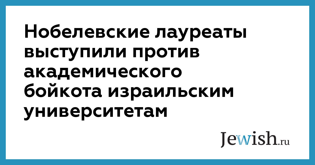 Двадцать один лауреат Нобелевской премии направит письмо в Ассоциацию преподавателей университетов Великобритании (AUT) с призывом отменить решение о наложении академического бойкота на израильские ВУЗы (Хайфский университет и университет имени Бар-Илана).