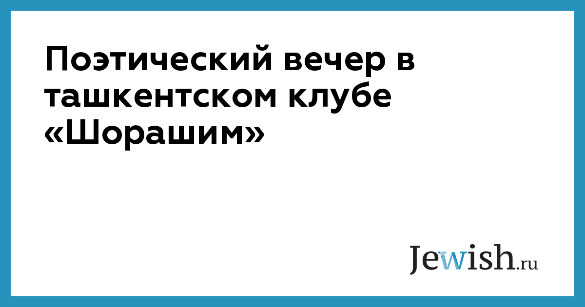 Поэтический вечер в ташкентском клубе «Шорашим»