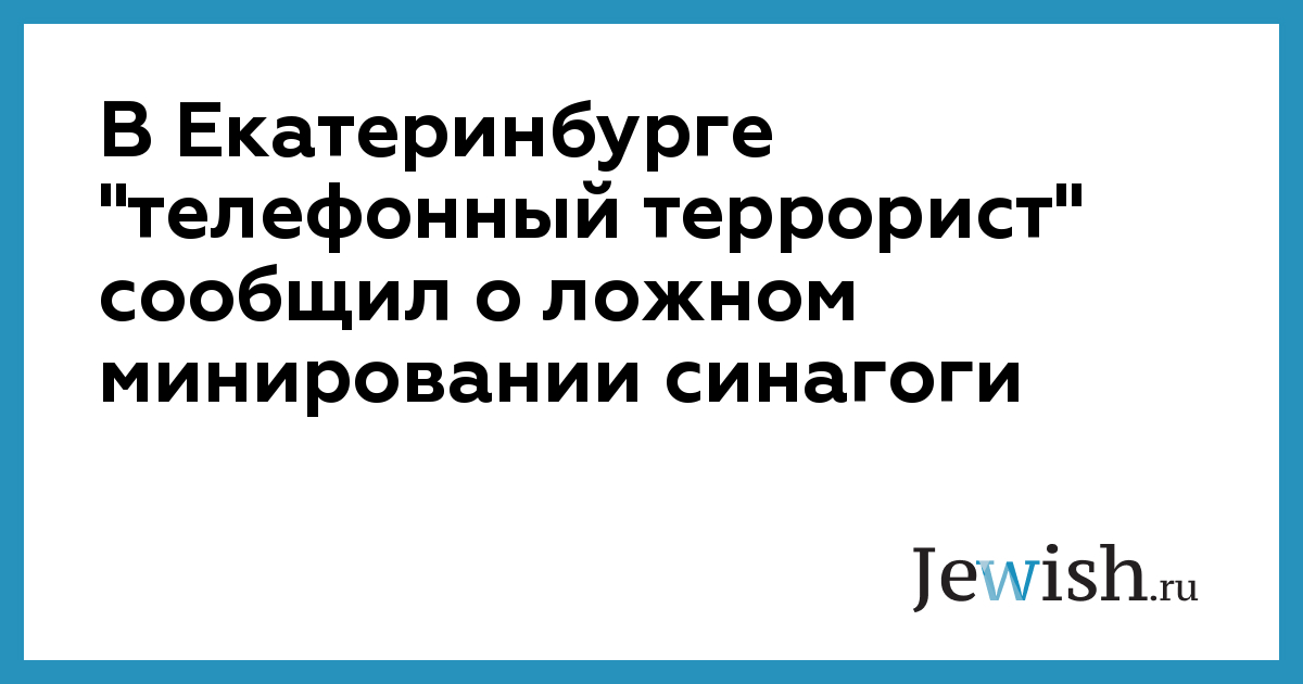 В синагогу еврейского общинного центра в Екатеринбурге в четверг поступил анонимный звонок о том, что здание заминировано. Проверка показала, что угроза была ложной, сообщили "Интерфаксу" в Федерации еврейских общин России.