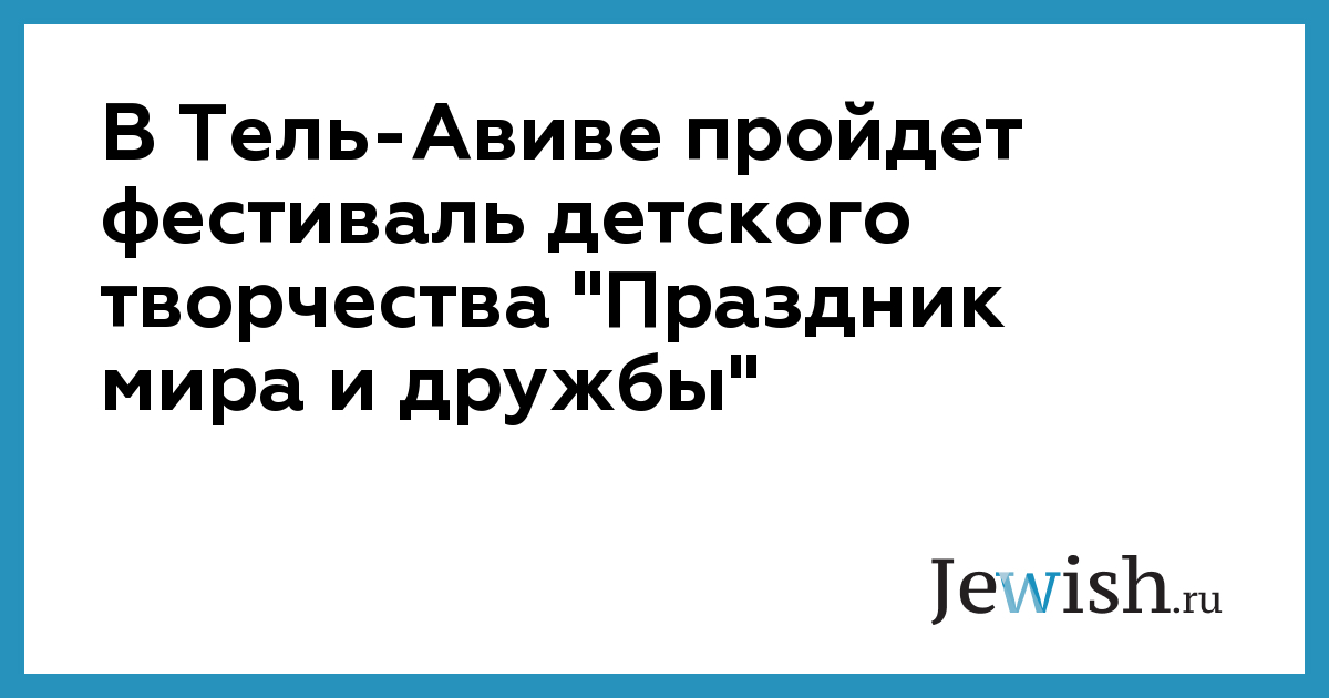 В Тель-Авиве пройдет фестиваль детского творчества "Праздник мира и дружбы"