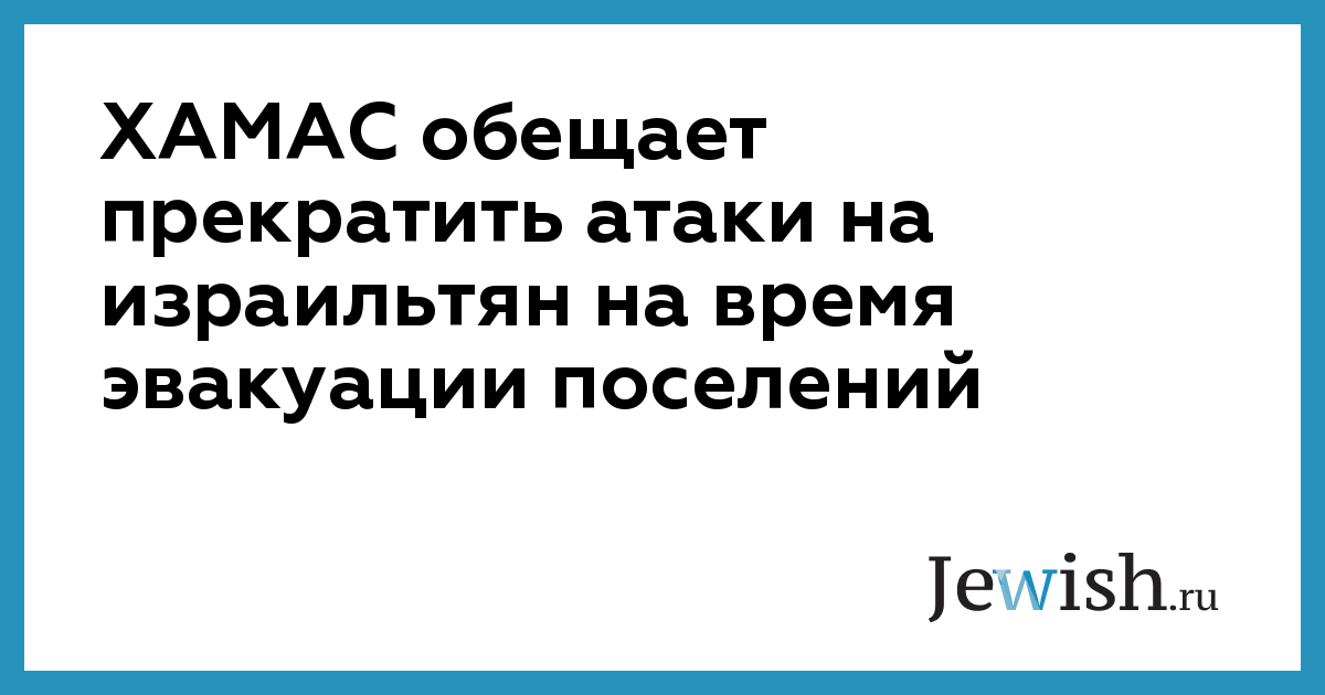 ХАМАС обещает прекратить атаки на израильтян на время эвакуации поселений
