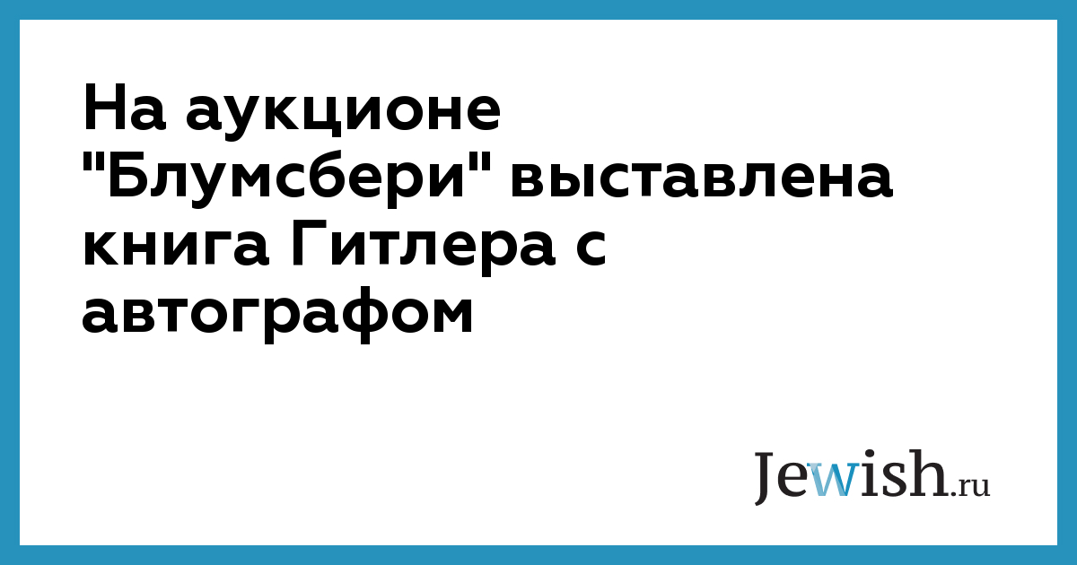В Великобритании на аукционе «Блумбери» выставлен на продажу экземпляр книги Адольфа Гитлера «Майн Кампф» с подписью автора, сообщает CNN. Начальная цена торгов — 45 тысяч долларов.