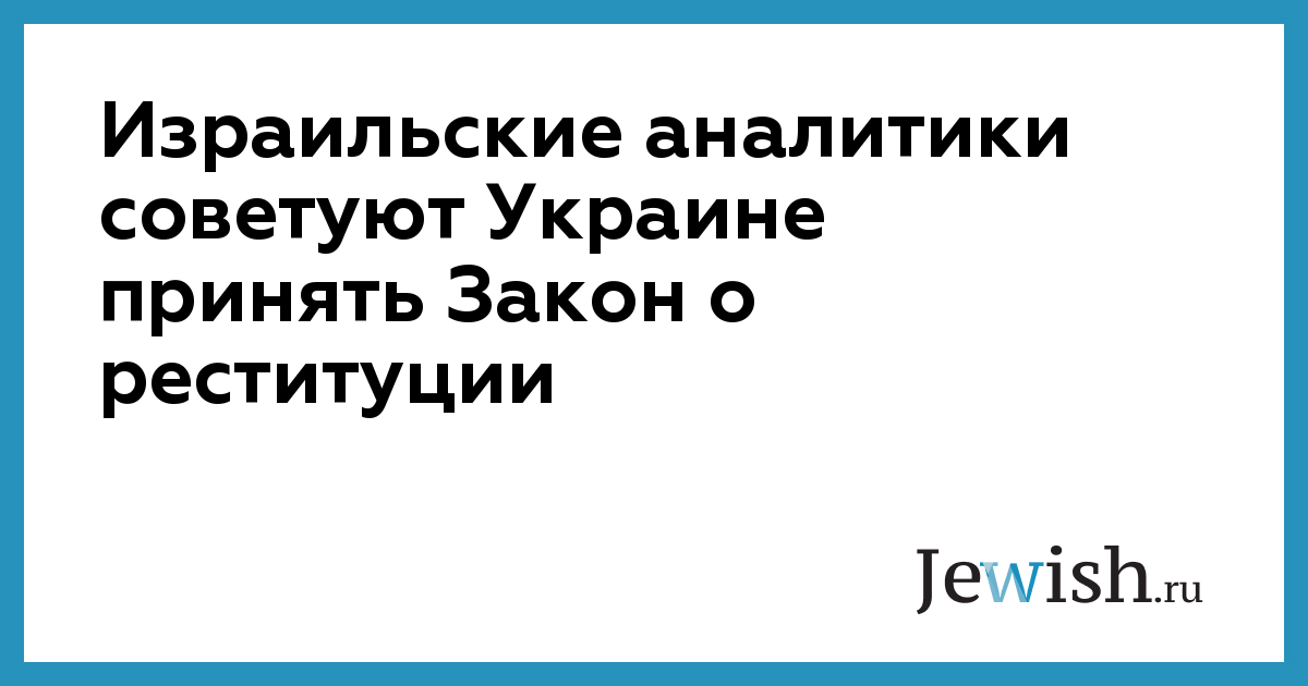 Принятие в Украине Закона о возврате имущества, конфискованного советским режимом у украинских евреев, будет содействовать решению подобной проблемы и в ряде центральноевропейских стран. Так израильские аналитики прокомментировали слова Председателя Верховной Рады Украины Владимира Литвина, который подчеркнул необходимость поиска "практического решения" этого вопроса.