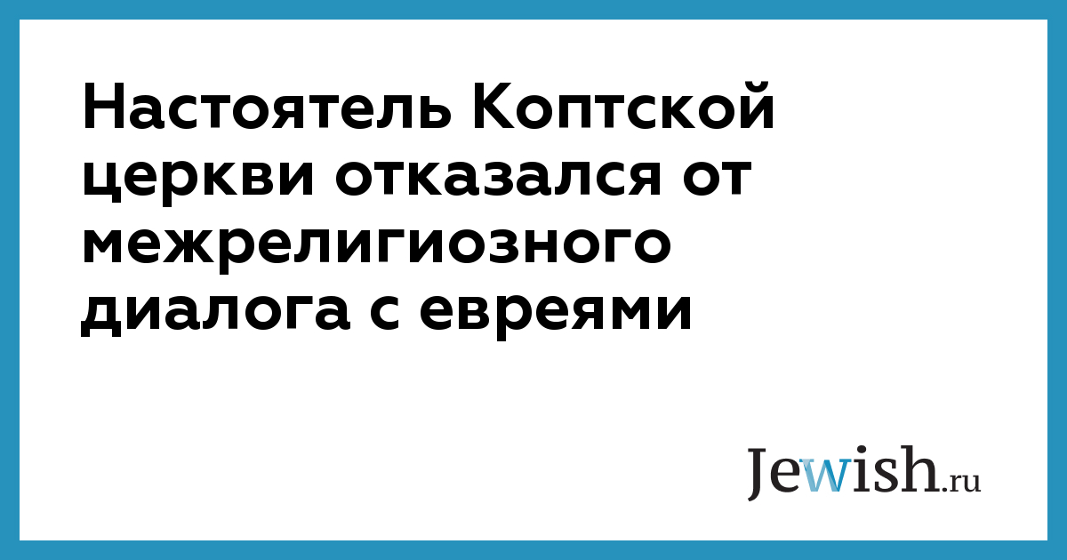 Настоятель Коптской церкви отказался от межрелигиозного диалога с евреями