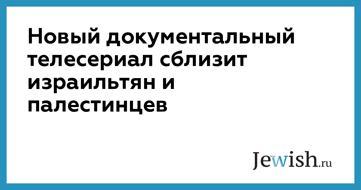 Новый документальный телесериал сблизит израильтян и палестинцев