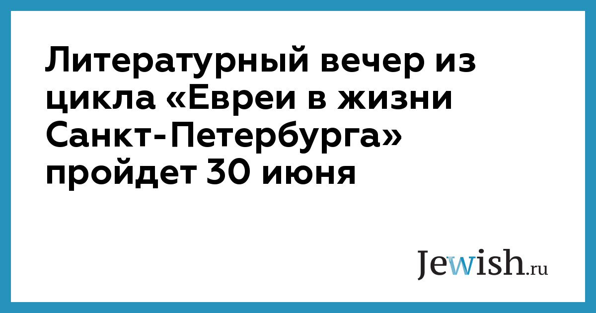 Литературный вечер из цикла «Евреи в жизни Санкт-Петербурга» пройдет 30 июня