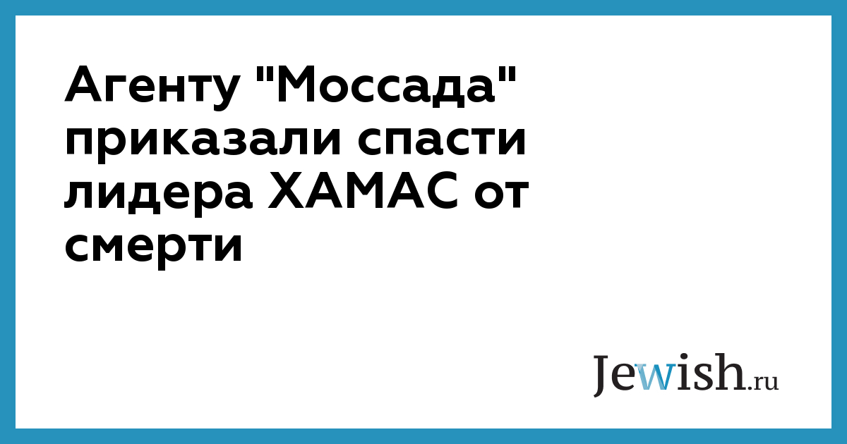 Агенту "Моссада" приказали спасти лидера ХАМАС от смерти