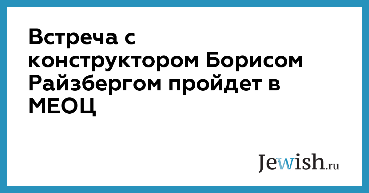 Встреча с конструктором Борисом Райзбергом пройдет в МЕОЦ