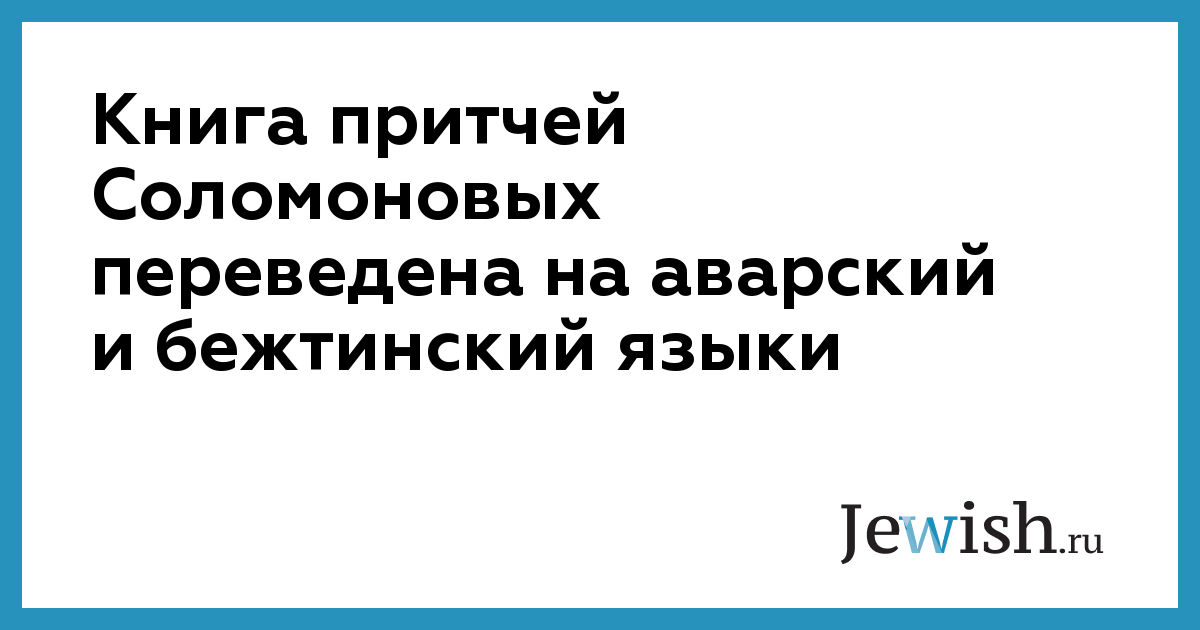 Книга притчей Соломоновых переведена на аварский и бежтинский языки