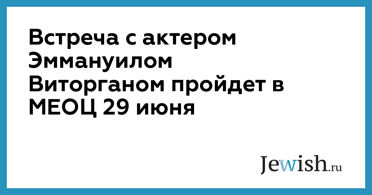 В рамках программы нового молодежного элитного ток-шоу клуба при Московском еврейском общинном центре 29 июня состоится встреча с актером театра и кино, народным артистом России Эммануилом Виторганом.
