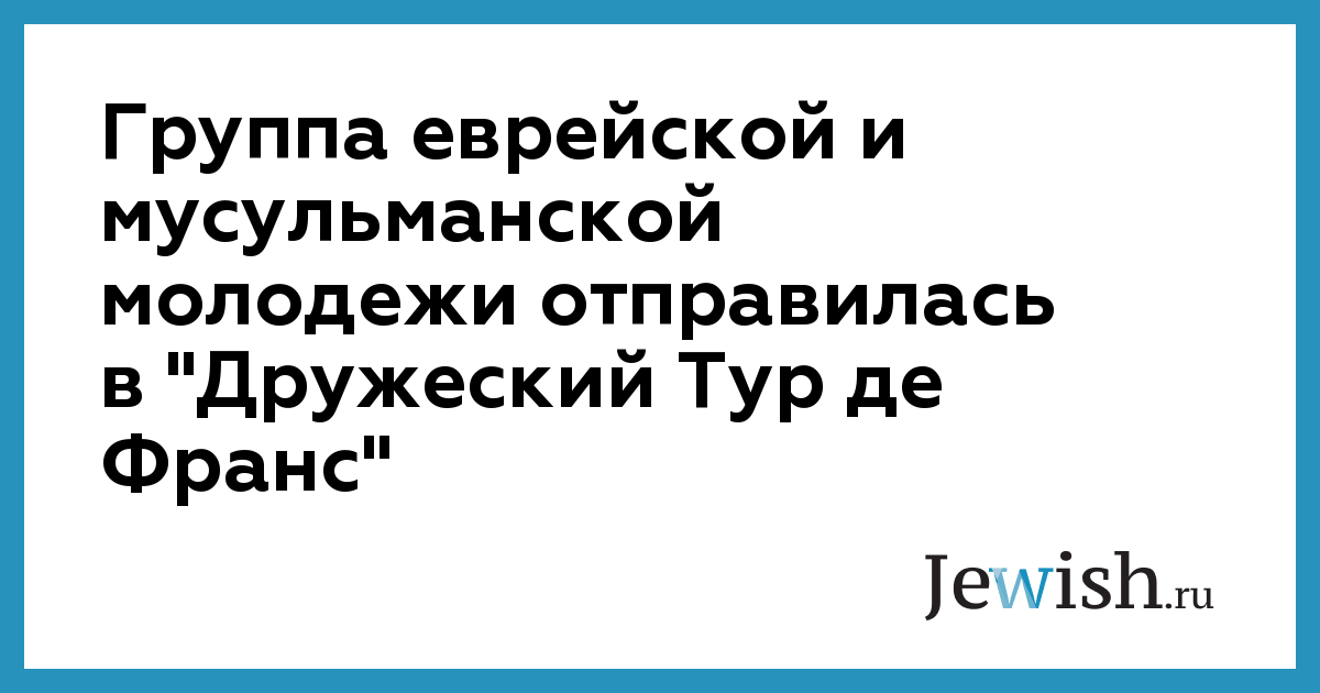 Французская ассоциация еврейско-мусульманских отношений объявила на прошлой неделе, что она проведет "Дружеский Тур де Франс" с 19 июня по 24 июля, во время которого молодые евреи и мусульмане проедут в двухэтажном автобусе по маршруту велопробега "Тур де Франс". Участники поездки стартуют в Париже и проедут примерно 20 городов, включая Лилль, Лион, Марсель, Тулузу и Бордо.
