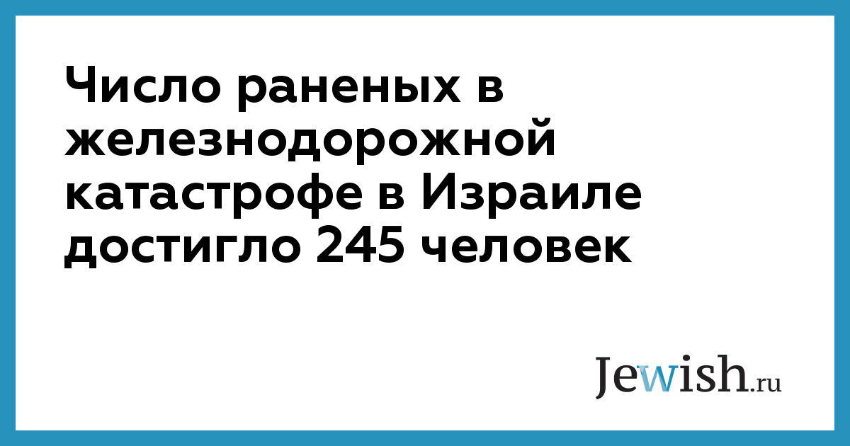 В результате крупнейшей в истории Израиля железнодорожной катастрофы погибли 8 человек, 245 получили ранения, есть пропавшие без вести. Как сообщает Maariv, в больницах страны остаются 110 человек, состояние 10-ти из них оценивается врачами как тяжелое, 22-х — как среднее, остальные ранены легко. Среди пострадавших оказалось более 90 военнослужащих. Известно, что двое погибших — водитель грузовика и машинист поезда — выходцы из СНГ.